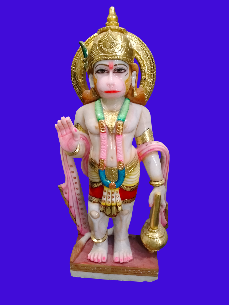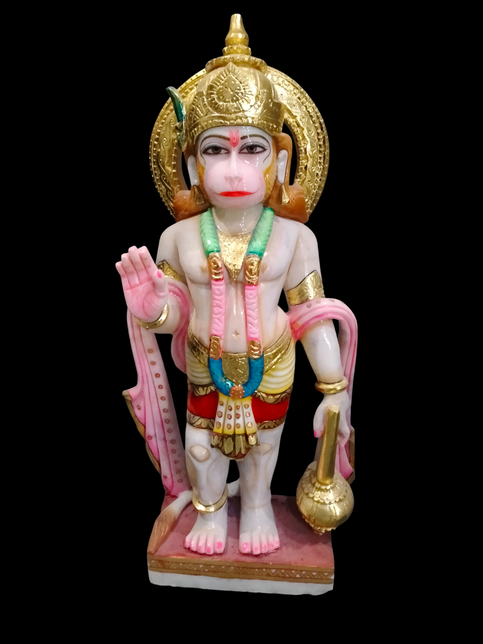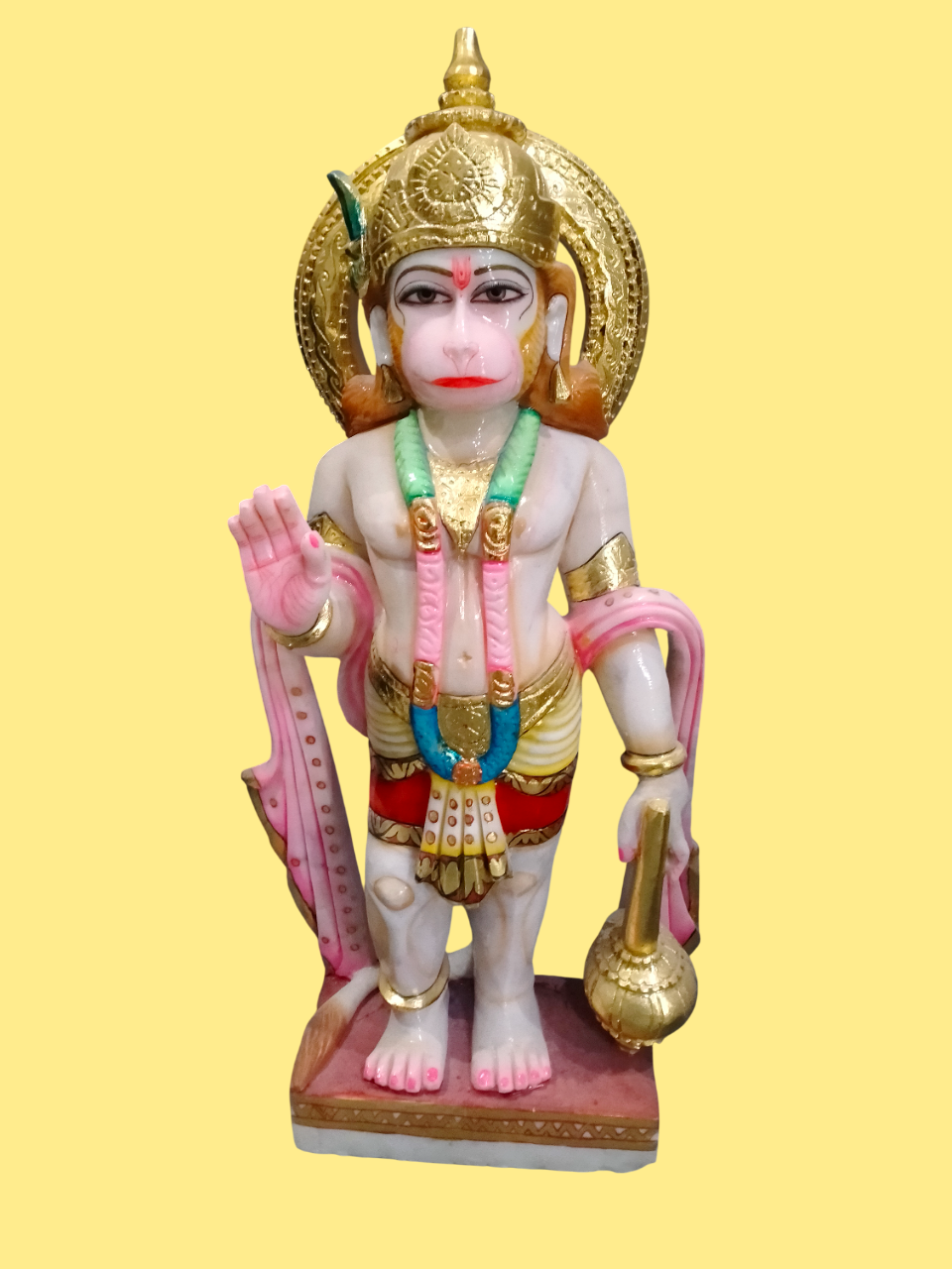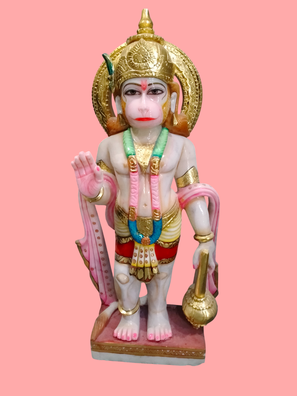 Apne ghar ki urja aur pavitarta badhane ke liye lijiye yeh premium quality white marble se bani Hanuman Ji ki murti. Is murti mein Prabhu ke chehre ki saumyata aur unke bal ka adbhut sangam hai. Visheshta: Ismein bariki se ki gayi nakashi aur chamakdar finish hai jo varshon tak barkarar rahegi. Best For: Mandir (Pooja room), Living room, ya kisi vishesh uphar (gift) ke liye. Symbolism: Yeh pratima bhakti, sahas aur sankat mochan shakti ka prateek hai.