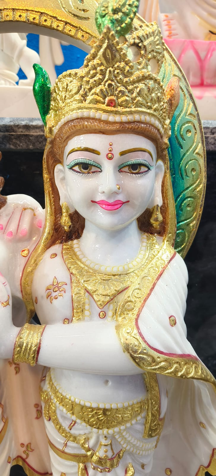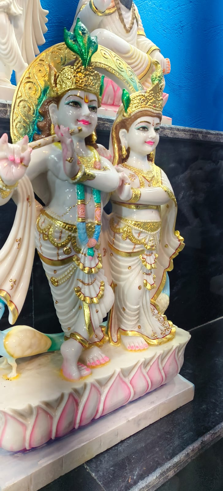 Apne ghar aur mandir ko ek shant aur pavitra vatavaran dene ke liye yeh sundar Radha Krishna murti ek perfect choice hai. Iska marble finish look aur fine detailing ise aur bhi khas banata hai. ✨ Features: Premium marble finish design Beautiful hand-painted detailing Strong & durable material Elegant white & gold combination Compact aur attractive size (home mandir ke liye perfect) 🙏 Spiritual Importance: Radha Krishna prem aur bhakti ka prateek hain. Is murti ko ghar me rakhne se positive energy, sukh aur shanti ka vikas hota hai.
